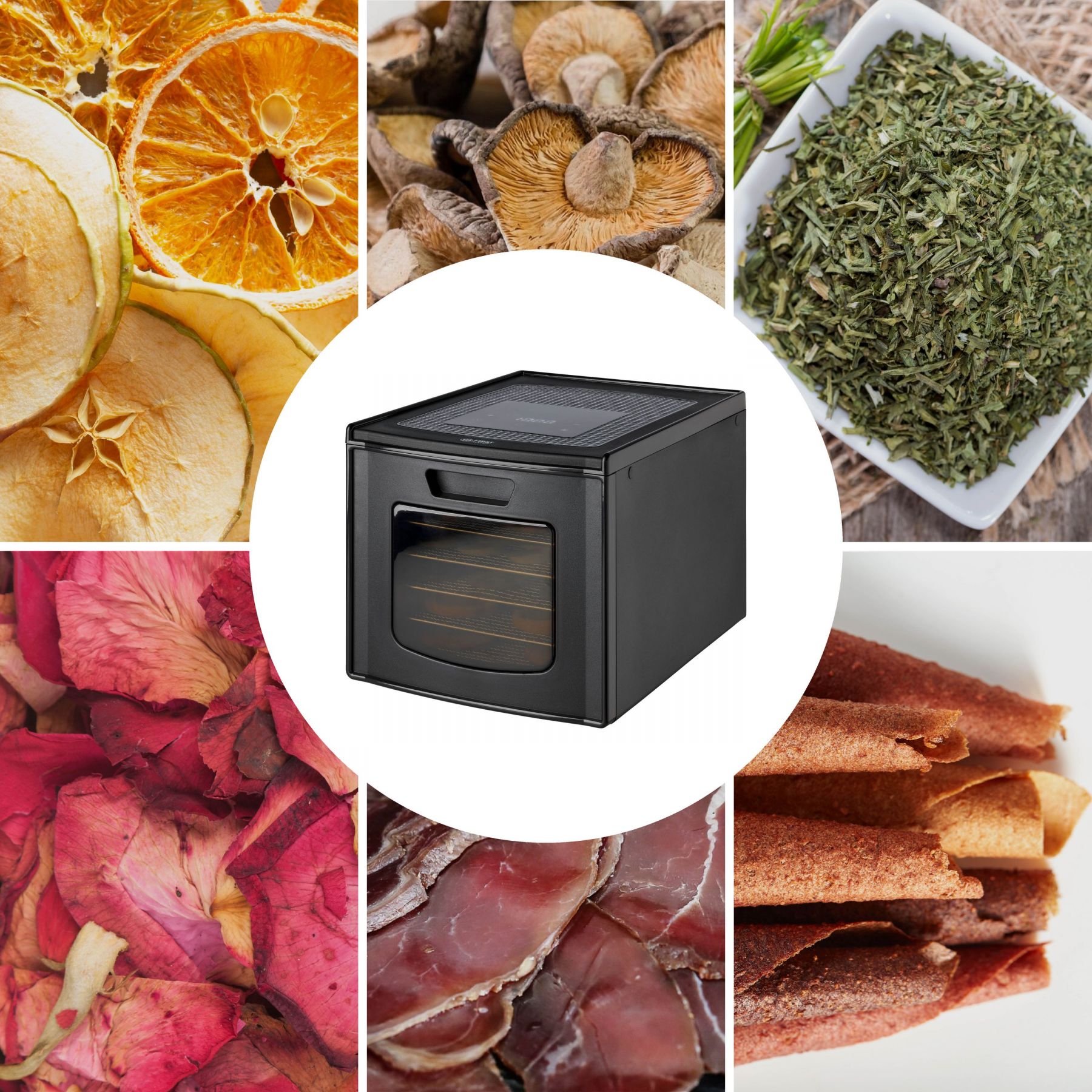 Не купуйте дорогі сухофрукти. Зробіть самі. Значно краще. Набагато дешевше. На п’яти полицях ви можете висушити все, що подобається вам і вашій родині, за допомогою практичного дегідратора. Як сухий перекус для офісу, в школу або як перекус на дорогу. Будь то фрукти, овочі чи м’ясо, процес сушіння працює повністю автоматично при температурі від 35°C до 70°C. Хороша річ у тому, що їжу, яка інакше залишилася, можна переробити та зберегти довше. Трави також можна сушити і переробляти в суміші спецій.
