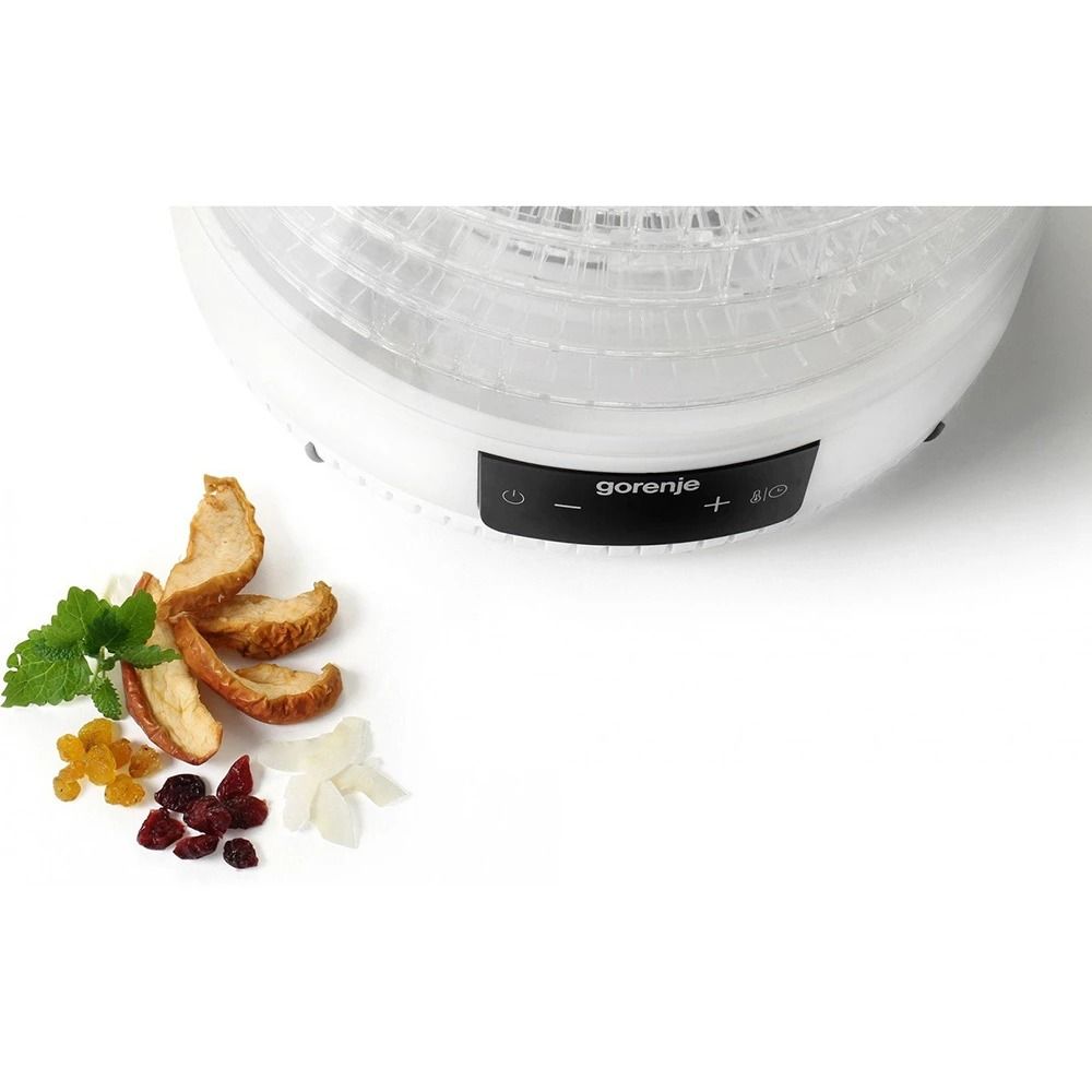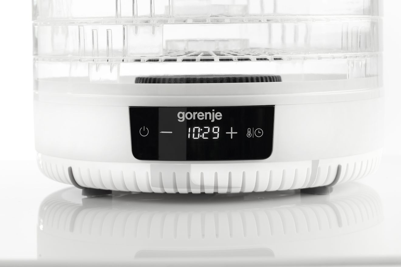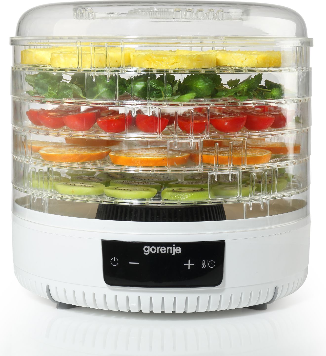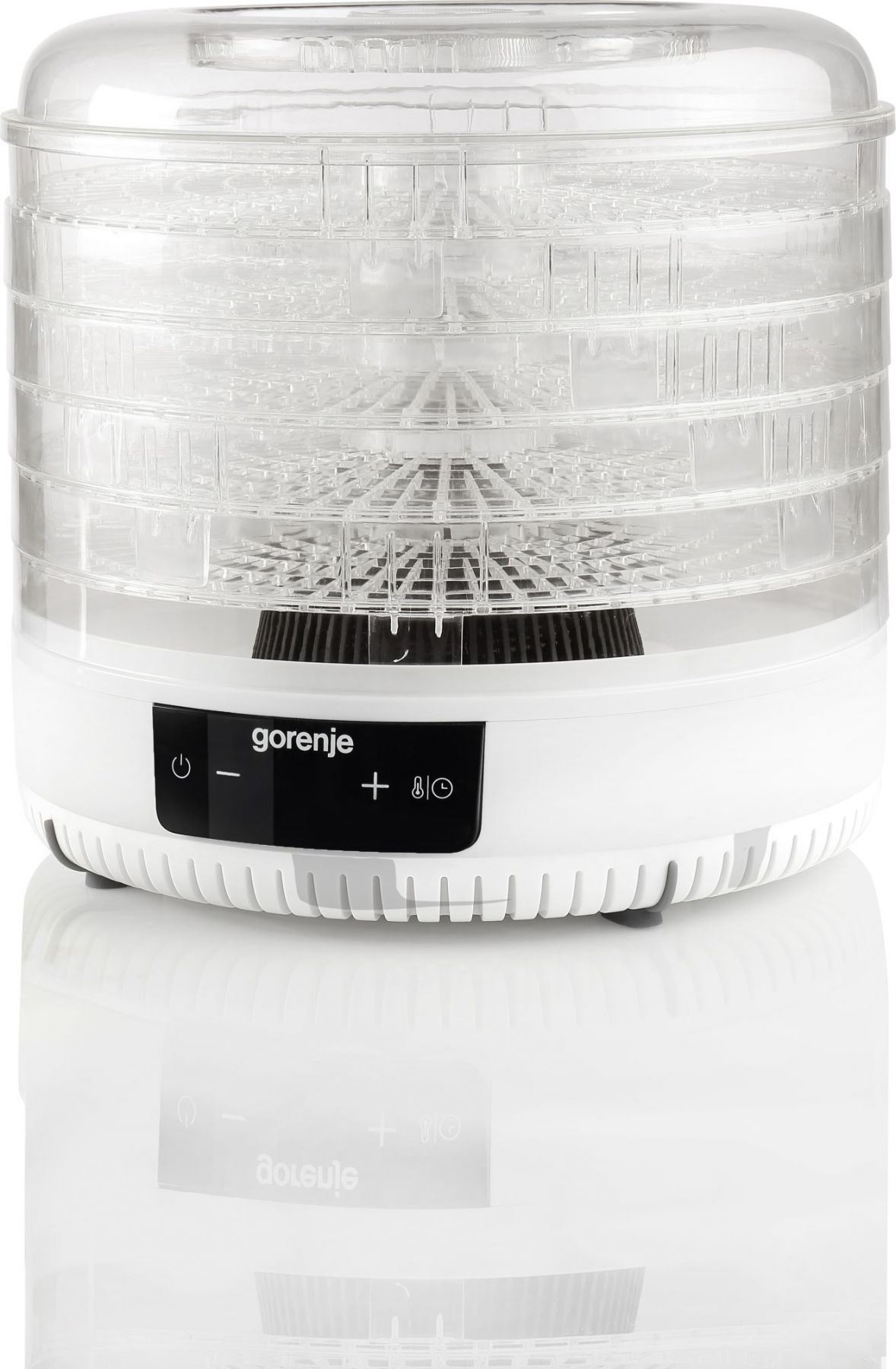 Електросушарка для продуктів дозволить висушити хліб, печиво, рибу, фрукти, трави, м"ясо, гриби, макаронні вироби і овочі зі збереженням всіх корисних властивостей. GORENJE FDK 500 GCW з 5 круглими лотками діаметром 31 см, які дозволяють рівномірно висушувати продукти на всіх рівнях. Лотки легко і просто замінюються.
