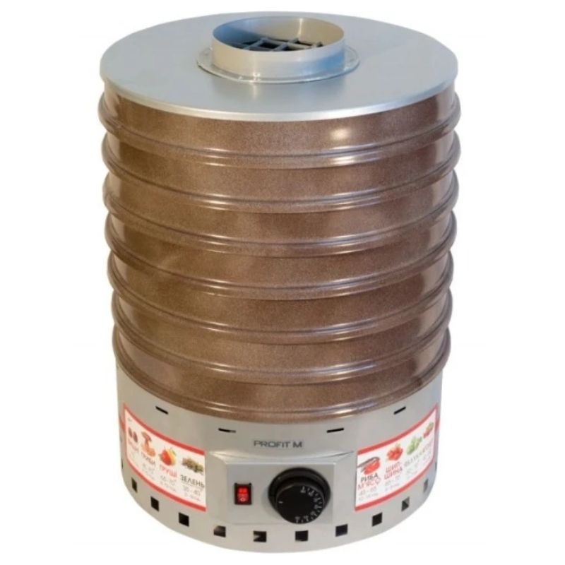 Це прилад який необхідний на вашій кухні. Сушарка зберігає приємний запах та аромат ваших улюблених фруктів та овочів, щоб ви могли насолоджуватися ними протягом усього року. Терморегулятор гарантує ідеальний процес сушіння. Металева конструкція корпусу та лотків, дозволяє сушити при високій температурі. Також додатковою перевагою являється великий об"єм сушильної камери.