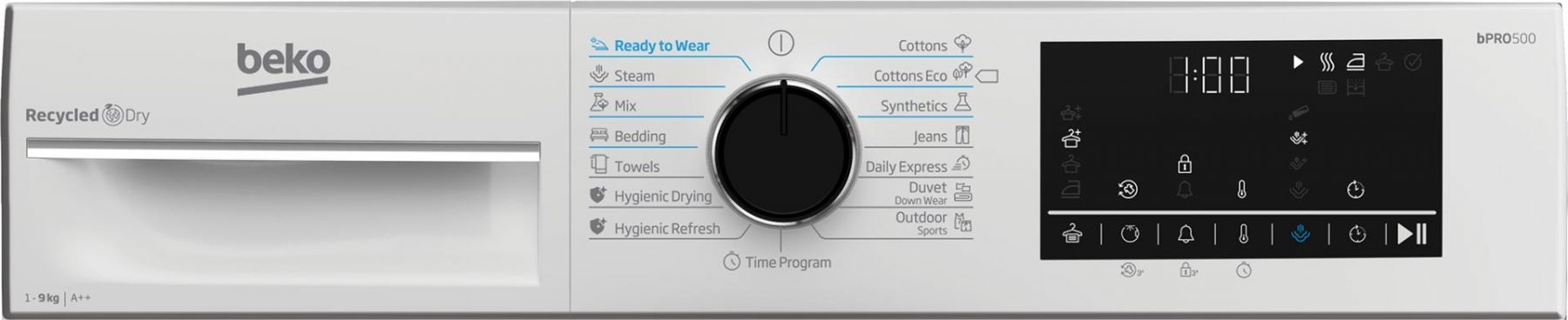 Програми:бавовна, бавовна Еко, верхній одяг / спортивний одяг, джинси, ковдри, рушники, пухові вироби змішана, суперкоротка експрес-програма 14 хв, Hygienic Drying, Hygienic Refresh
