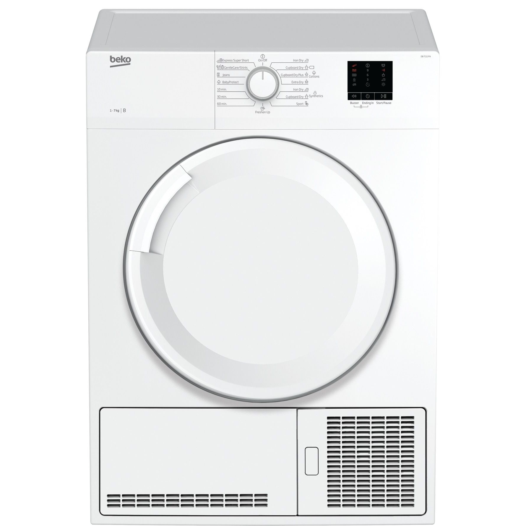 За зовнішнім виглядом сушарка-автомат нагадує пральну машину, але її не потрібно підключати до водопроводу. Модель DB7111PA - конденсаційного типу. Зібрана з білизни волога конденсується і виводиться в каналізацію. Підключення до вентиляційного каналу не потрібне.