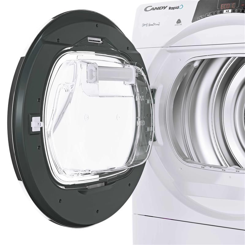 Розташований вище звичайного великий завантажувальний люк і зручна панель керування Touch Console в сушильній машині Candy RapidO дозволяють полегшити процес завантаження та вивантаження білизни.
