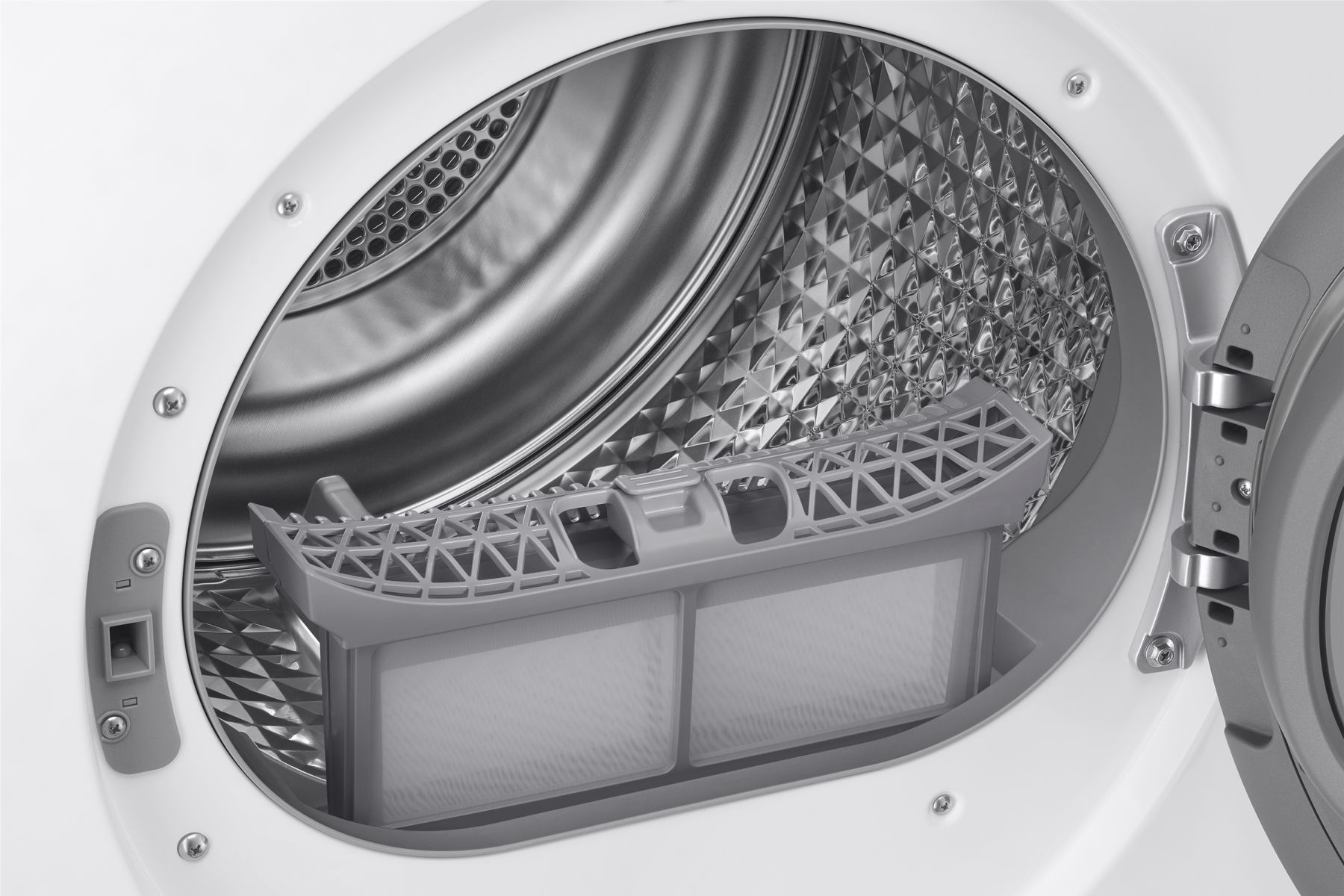 Заощаджуйте гроші та бережіть довкілля, споживаючи менше електроенергії. Тепловий насос забезпечує енергоефективний, економічний та дбайливий спосіб сушіння вашого одягу. Вона має клас енергоефективності A+++, оскільки в ній використовується «холодоагент» замість електрики для нагрівання повітря та рециркуляція теплого повітря, щоб уникнути зайвих витрат енергії.