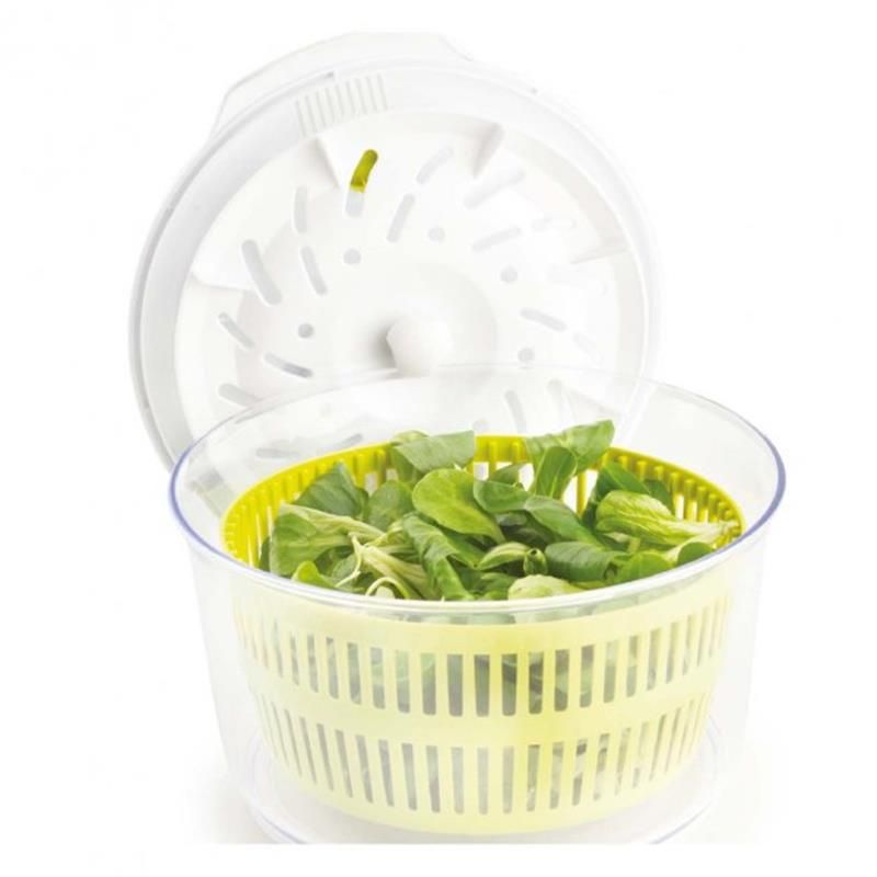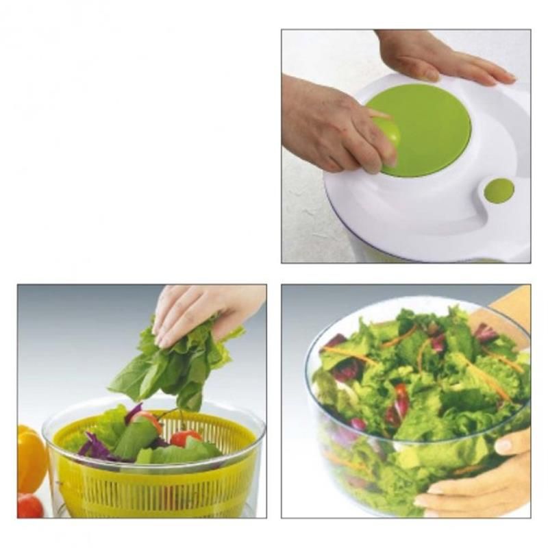Сушарка для зелені Tavialo дає змогу мити й сушити зелень, фрукти та овочі стільки разів, скільки завгодно, завдяки зручній системі для роботи однією рукою. Додайте і зливайте воду, не знімаючи кришку. Ємність об’ємом 3 літри та сітчастий кошик також можуть бути використані для зберігання фруктів та овочів після сушіння.