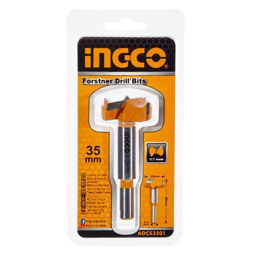 Свердло Форстнера 35 мм INGCO виконаний з високоміцного сплаву з напайкою з карбіду вольфраму.
