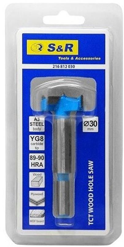 Пропонуємо до вашої уваги свердло S&R (216812030). Батьківщиною бренду цього товару є Німеччина. Свердло форстнера характеризується діаметром 30 мм, призначене для роботи з деревом, ДСП, ламінатом, МДФ та гіпсокартоном.