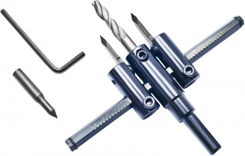 Свердло для дерева S&R розсувне — застосовується для свердління отворів діаметром від 30 до 120 мм у дереві, фанері, ДСП, ДВП, ламінаті, гіпсокартоні тощо.