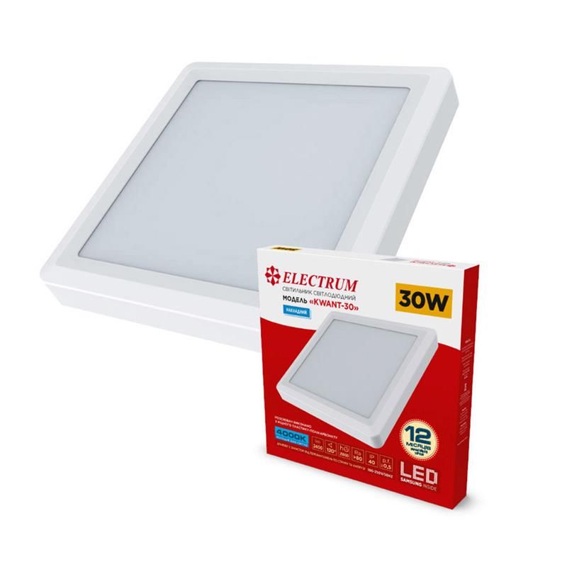 Світильник настінно-стельовий накладний світлодіодний квадратний Electrum 30W 4000К KVANT B-LD-1969