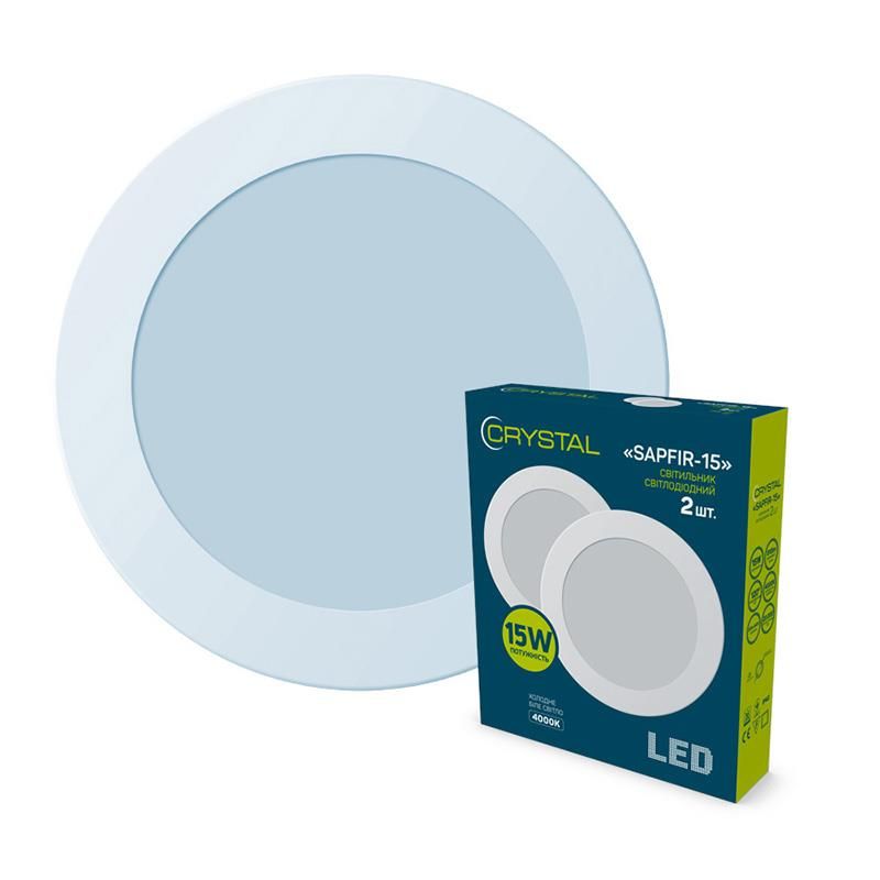 Світильник стельовий світлодіодний вбудований круглий 15W 4000K SAPFIR (комплект 2шт.) CRYSTAL DNL-004