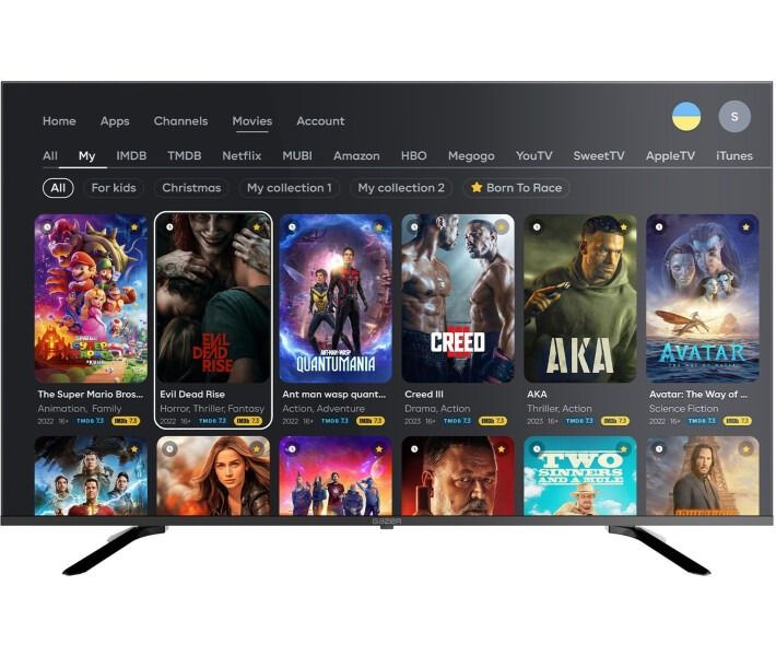 Безрамковий екран повністю занурить вас у кіно, дозволить зосередитися на мистецтві та мандрувати метавсесвітом. Відтворюйте будь-які популярні формати та налаштовуйте ідеальний звук Hi-Fi рівня під себе завдяки 9-смуговому еквалайзеру. Підтримуються кодеки: Dolby, AC3, AC4, EAC3, FLAC, AAC.Швидка, стабільна та функціональна операційна система Android TV. Понад 10 000 додатків з каталогу Google Play Market. Netflix, YouTube, Disney+, Amazon Prime — вже встановлені у вашому телевізорі.Максимум потужності завдяки 4-ядерному процесору А55 64 bit. Інтерфейс і програми реагують на всі команди ще швидше завдяки 2 Гб оперативної пам’яті. 8 Гб Flash пам’яті дозволять встановити всі необхідні програми та онлайн-кінотеатри.
