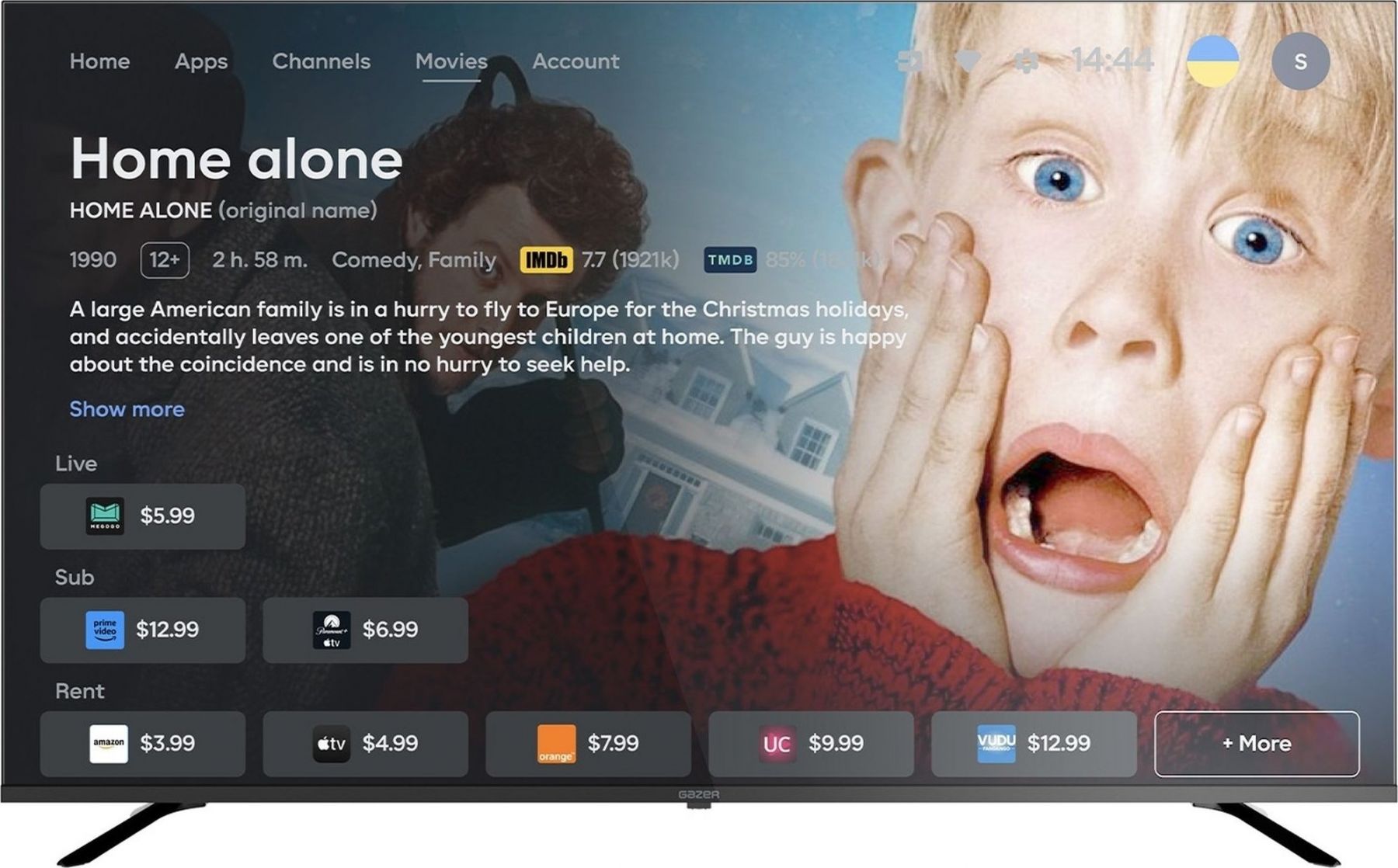 Безрамковий екран повністю занурить вас у кіно, дозволить зосередитися на мистецтві та мандрувати метавсесвітом. Відтворюйте будь-які популярні формати та налаштовуйте ідеальний звук Hi-Fi рівня під себе завдяки 9-смуговому еквалайзеру. Підтримуються кодеки: Dolby, AC3, AC4, EAC3, FLAC, AAC.Швидка, стабільна та функціональна операційна система Android TV. Понад 10 000 додатків з каталогу Google Play Market. Netflix, YouTube, Disney+, Amazon Prime — вже встановлені у вашому телевізорі.Максимум потужності завдяки 4-ядерному процесору А55 64 bit. Інтерфейс і програми реагують на всі команди ще швидше завдяки 2 Гб оперативної пам’яті. 8 Гб Flash пам’яті дозволять встановити всі необхідні програми та онлайн-кінотеатри.