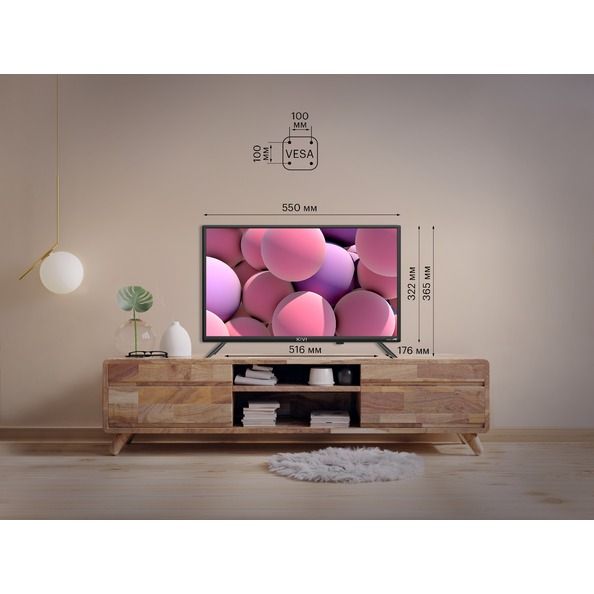Вибрати місце для телевізора Kivi 24H750NB нескладно: установка на площині передбачає наявність підставки, а на стіні закріпити техніку можна за допомогою VESA кріплень стандарту 100х100. Будь-який варіант прикрашатиме інтер'єр і надійно фіксуватиме пристрій.