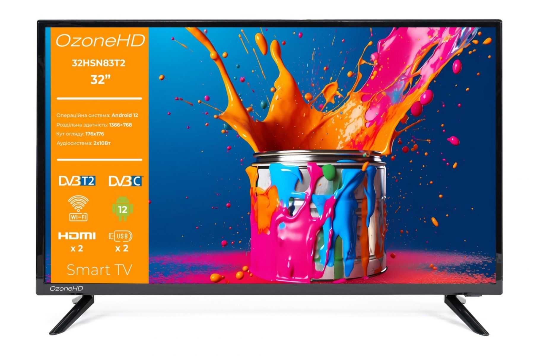 Телевізор OzoneHD 32HSN83T2 – 32 дюймова модель зі смарт-функціоналом, реалізованим на базі 4-х ядерного процесора та операційної системи Android 12 та широкими функціональними можливостями. Оснащений USB медіаплеєром, аналоговим та цифровим тюнером (ATV, DVB-C/T, DVB-T2), 8 ГБ вбудованою пам'яттю та комфортним керуванням.