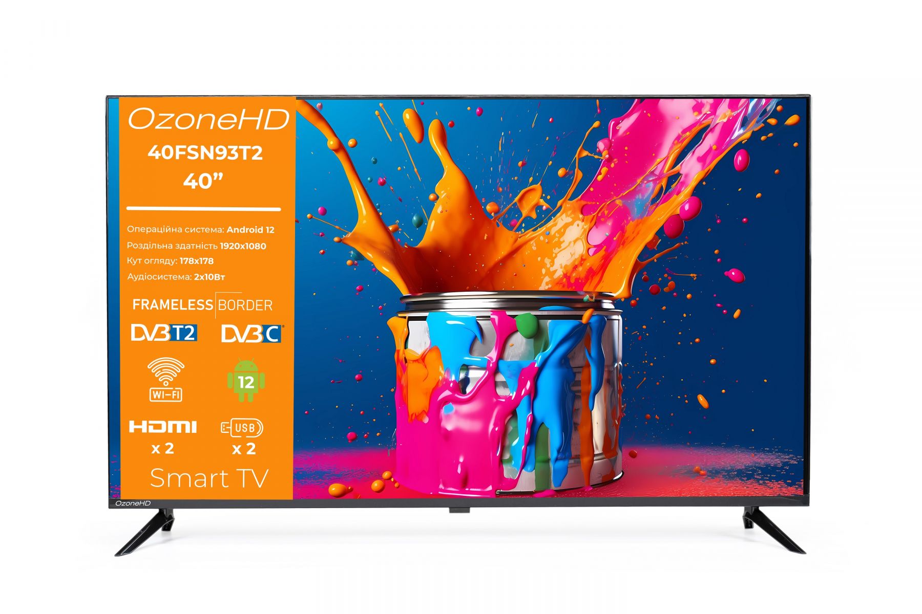 Телевізор OzoneHD 40FSN93T2 – 40 дюймова модель зі смарт-функціоналом, реалізованим на базі 4-х ядерного процесора та операційної системи Android 12 та широкими функціональними можливостями. Оснащений USB медіаплеєром, аналоговим та цифровим тюнером (ATV, DVB-C/T, DVB-T2), 8 Гб вбудованою пам’яттю та комфортним керуванням.