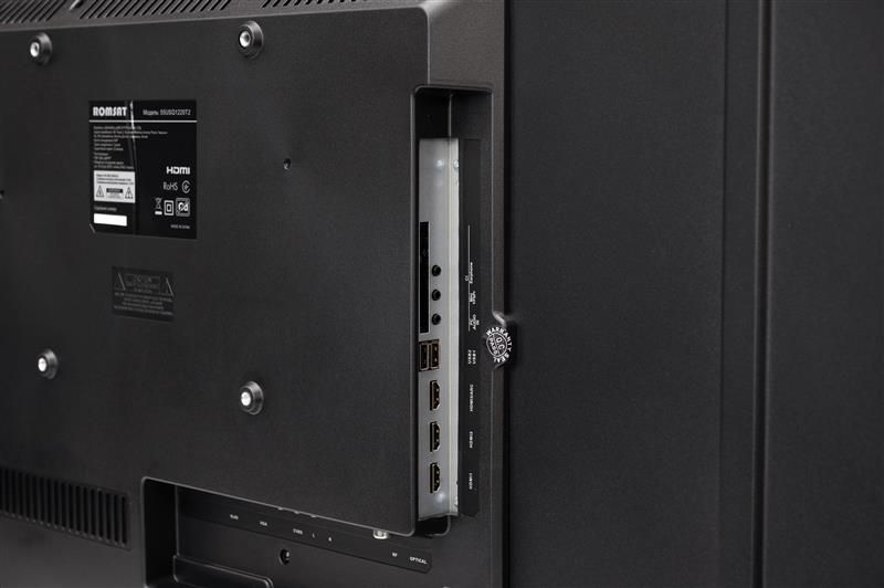 Завдяки трьом роз’ємам HDMI телевізор підключається до джерел цифрового відеосигналу високої чіткості (480i, 480p, 720p, 1080i, 1080p, 2160p). У моделі Romsat 55USQ1220T2 є вбудований цифровий та аналоговий тюнери DVB-C/DVB-T/DVB-T2 для перегляду безкоштовного ефірного Т2 та кабельного телебачення (підключення до мереж кабельних операторів). Вбудований CI слот дає змогу переглядати закодовані (закриті) пакети каналів цифрового телебачення.