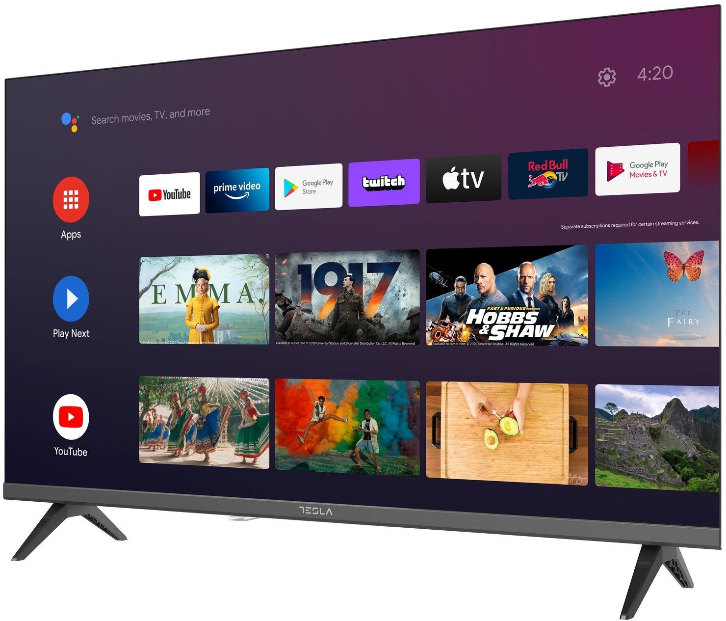 Функція Smart TV на ОС Android TV 11 у моделі Tesla 32E635BHS розширює можливості телевізора під час перегляду контенту на різних платформах. У ваш телевізор уже інтегровані такі відомі майданчики, як Netflix, Prime Video і Youtube з повною підтримкою Google. Дистанційне керування телевізором стало в рази простіше завдяки розумному Google Асистенту.