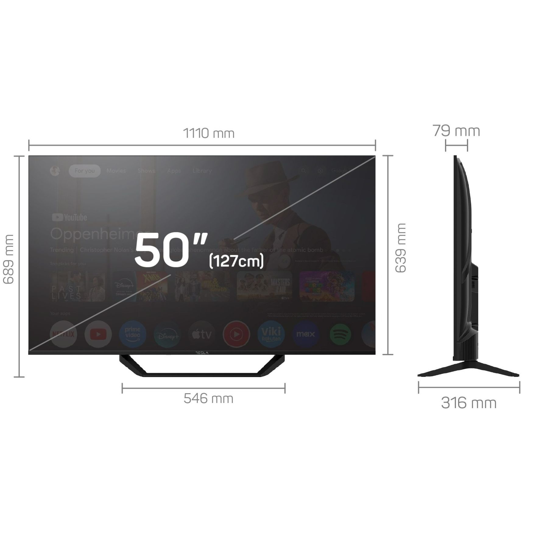 Пристрій має 50-дюймовий екран, що дає змогу зануритися в захопливий контент із дивовижним рівнем деталізації. Телевізор створений у сучасному та елегантному дизайні, який гармонійно доповнить інтер'єр будь-якого приміщення. Тонкі рамки максимізують площу перегляду, дозволяючи насолоджуватися кожним моментом без відволікаючих елементів.