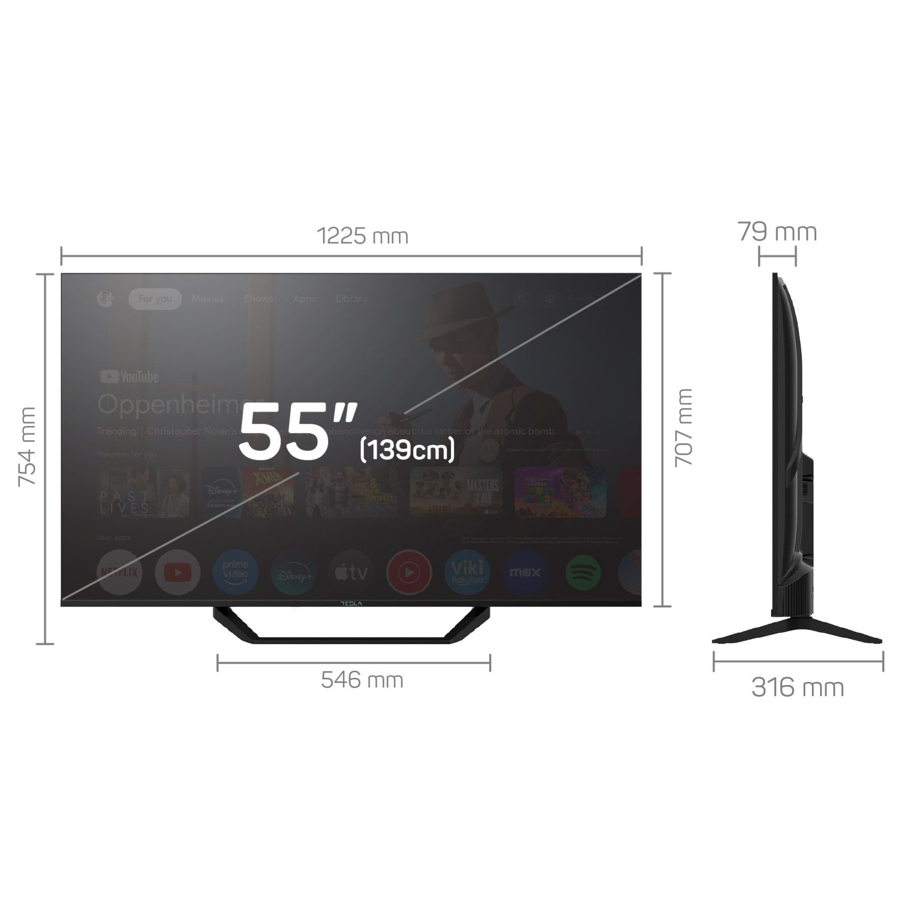 Пристрій має 55-дюймовий екран, що дає змогу зануритися в захопливий контент із дивовижним рівнем деталізації. Телевізор створений у сучасному та елегантному дизайні, який гармонійно доповнить інтер’єр будь-якого приміщення. Тонкі рамки максимізують площу перегляду, дозволяючи насолоджуватися кожним моментом без відволікаючих елементів.