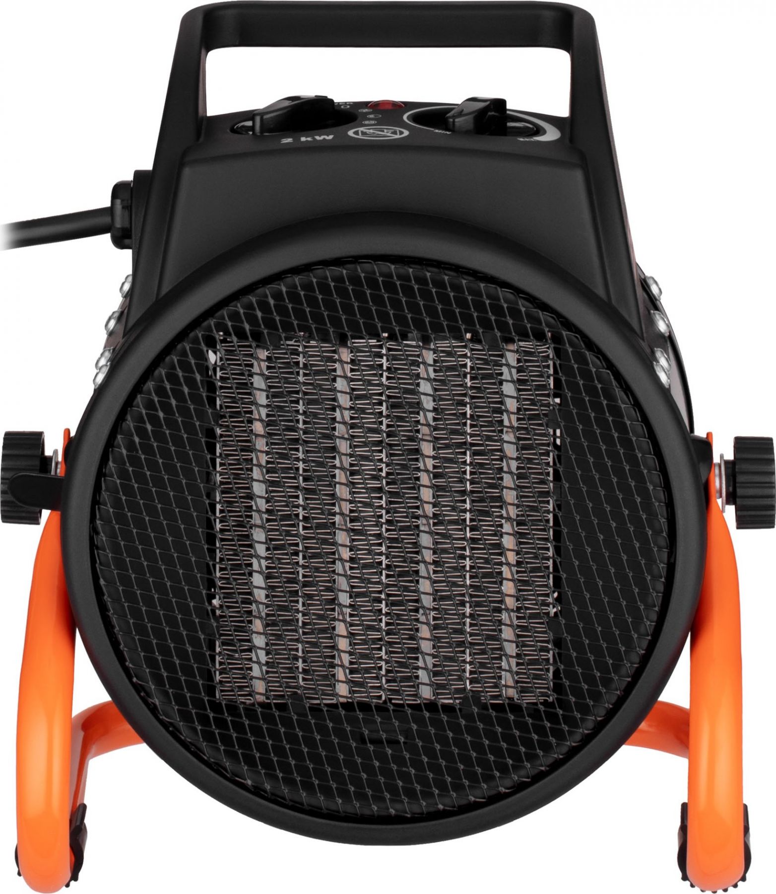 Головним у тепловій гарматі 2E-AHC2000 є керамічний нагрівальний елемент (PTC), що розпалює повітря, яке нагнітає вентилятор, до високої температури. Отримати необхідну температуру можна одразу, оскільки гармата дає тепло з перших хвилин роботи завдяки потужності 2 кВт. Потужність обігріву та кут потоку повітря можна регулювати залежно від температури довкілля.
