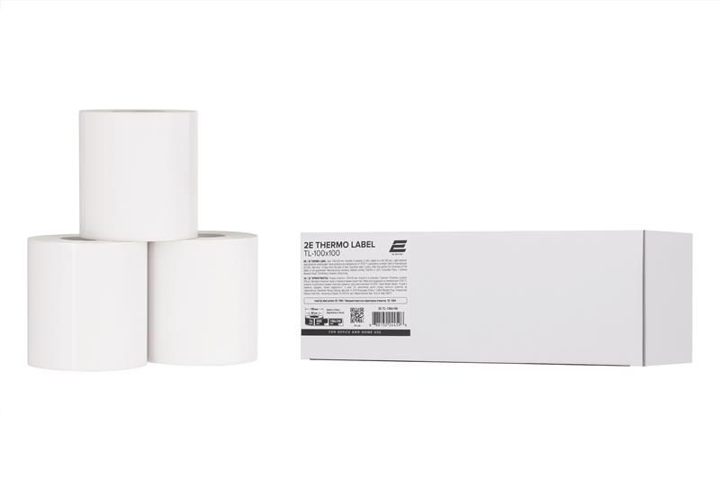 Термоетикетку 2E-TL-100X100 виготовлено зі спеціального самоклейного паперу з чутливим до нагрівання верхнім шаром. За високої температури він темніє, проявляючись у вигляді відбитка букви або цифри. Розмір термоетикетки 2E-TL-100X100 становить 100 ?100 мм. В одному рулоні 500 етикеток (у комплекті 3 рулони).