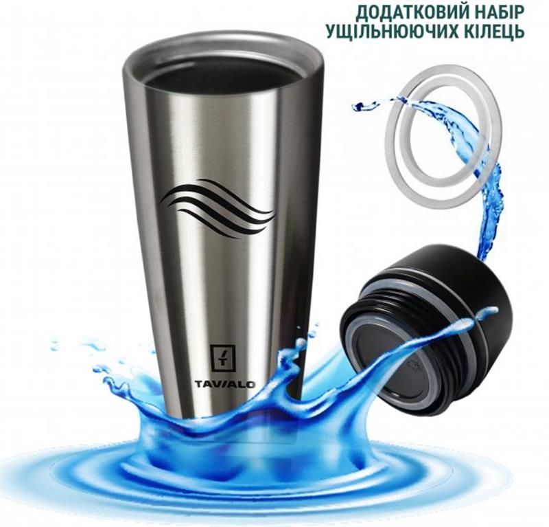 Термопляшка Tavialo 460 мл металевий сріблястий + 2 ущільнювальних кільця (190460109)