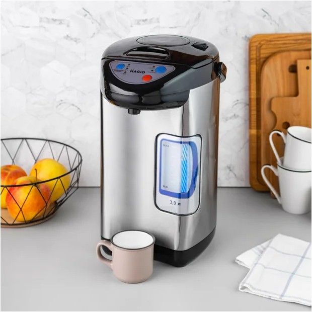 Для комфортного використання, подача води в термопот може відбуватися трьома способами: натиск чашкою, ручний і електропомпа. Завдяки великому обсягу,