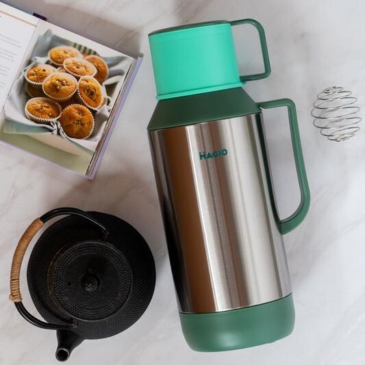 Термос MG-1052 виготовлений із термостійкого міцного пластику та нержавіючої сталі. Внутрішня колба виготовлена зі скла. Використання термостійкого скла дозволяє забезпечити триваліший час температурного режиму. Також матеріал не вбирає смакових якостей напоїв, що є значним плюсом. Стане чудовим подарунком для людей, які люблять проводити свій час у туристичних походах, за рибалкою чи на полюванні.