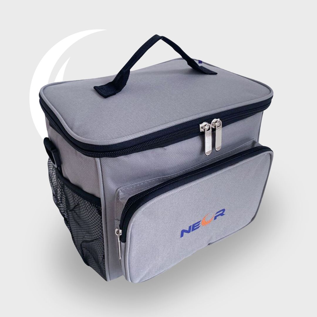 Ергономічно розроблена сумка-холодильник з високоміцного поліестеру 600D, нетоксичної підкладки РEVA, безпечної для харчових продуктів, пінопластової ізоляції PE та міцних блискавок SBS. Цей матеріал має високу якість та стійкість до розривів. Може зберігати вашу їжу в холоді понад 9 годин, якщо ви покладете 2 пакети з льодом. Водостійка.