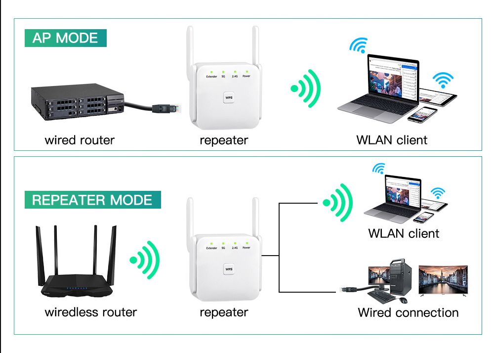 FENVI 1200Mbps 5GHz Бездротовий Wi-Fi Репітер Підсилювач сигналу 2.4G/5GHz — Роутер, розширювач діапазону, Wi-Fi повторювач.