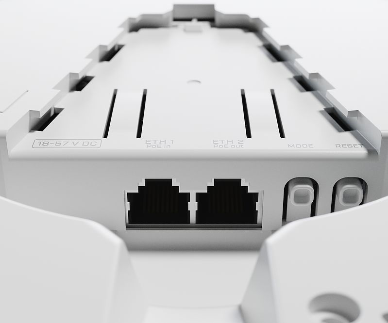 Незважаючи на те, що точка доступу підтримує режим ретранслятора, вона також містить два порти Ethernet, які дають Вам можливість розширити Вашу мережу надійним дротовим підключенням, і навіть якщо потрібно живлення PoE, оскільки cAP ac підтримує 802.3af PoE input (вхід) на першому порту і passive PoE output (вихід) (до 57В) на другому порту. Тому він може підключати і живити RouterBOARD і інші пристрої, такі як IP-камери.