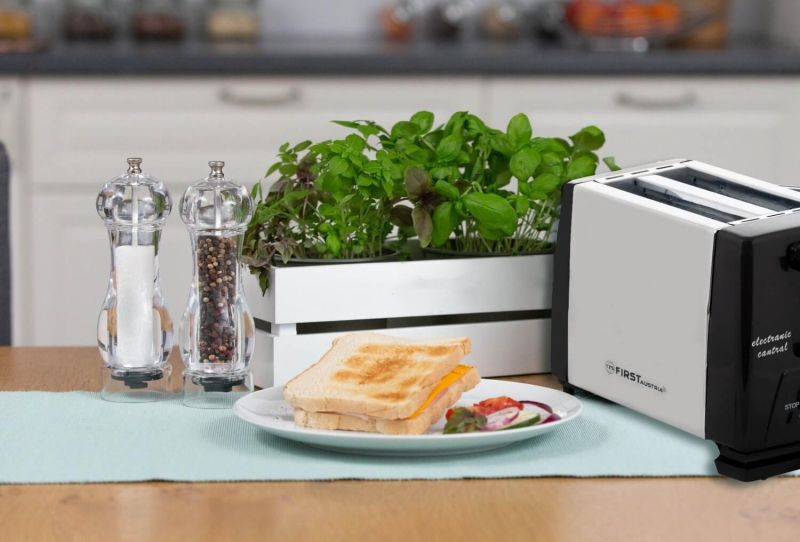 На бічній частині тостера First FA 5366 встановлено пружинний важіль включення. При його опусканні пружина стискається, і тостер приступає до роботи. Тости обсмажуються під впливом інфрачервоного випромінювання - безконтактно,не торкаючись до жарочної поверхні. Воно виробляється високоміцною і довговічною спіраллю з ніхромового проводу. Пружина утримується невеликим електромагнітом до моменту виконання встановленої програми. Після його досягнення, електромагніт вимикається, і тости "вистрибують" назовні.