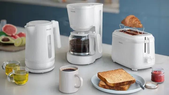 Відкрийте для себе повний набір для сніданку серії 3000 із чайником і крапельною кавоваркою у єдиному стилі.