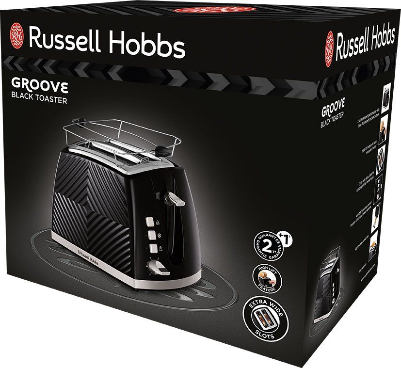 Будьте попереду останніх домашніх тенденцій із тостером Russell Hobbs Black із 2 скибочками Groove. Він поєднує такі дизайнерські характеристики, як текстурований пластик з акцентами з нержавіючої сталі, і всі технічні особливості, які полегшують життя. Наприклад, циферблат підрум’янювання з 6 налаштуваннями відтінків позбавить вас від підсмажування. Більш широкі слоти означають, що ви можете підсмажити товсті скибочки, а функції замороженого, розігрівання та скасування надають вам контроль. Холодне блакитне світло повідомляє, коли прилад увімкнено, а зручна функція високого підйому дозволяє безпечно діставати скибочки гарячих тостів одним натисканням кнопки. Крім того, є підігрівач булочок, щоб ваша випічка була теплою. З таким стилем на вашій стільниці ви будете раді лотку для крихт, який також підтримує порядок на робочих поверхнях.