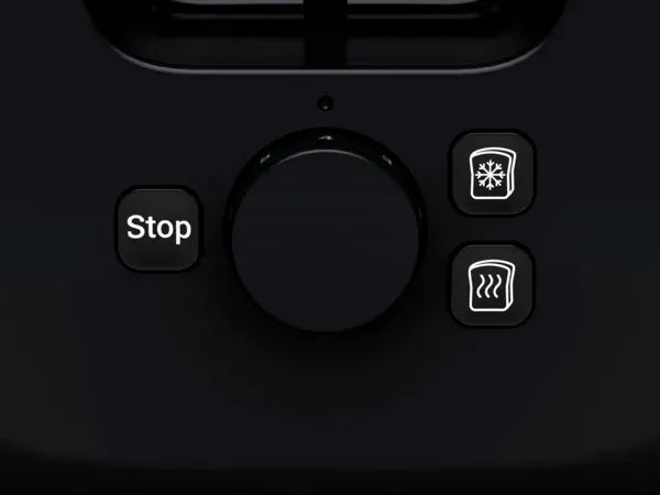 Три підсвічені кнопки: «стоп» для уникнення надмірного підсмажування, «розморожування» для тостів прямо з морозилки та «підігрів» для швидкого відновлення смаку.