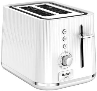 Тостер Tefal TT761138 виготовлений в білому пластиковому корпусі з хромованими елементами. Прилад потужністю 850 Вт володіє двома широкими слотами з функцією автоцентрування, яка забезпечує рівномірний нагрів шматочків хліба з обох сторін. Ступінь прожарювання регулюється ергономічним поворотним перемикачем 7 рівнями. Пристрій дозволяє готувати тости із замороженого хліба і розігрівати вже готові вироби, а завдяки високому підйому можна використовувати невеликі скибочки. Щоб робоча поверхня залишалася чистою, все утворюються крихти збираються в знімний піддон, який легко звільняється від них. Процес приготування в тостері Tefal TT761138 може бути негайно перерваний користувачем натисненням кнопки Stop.