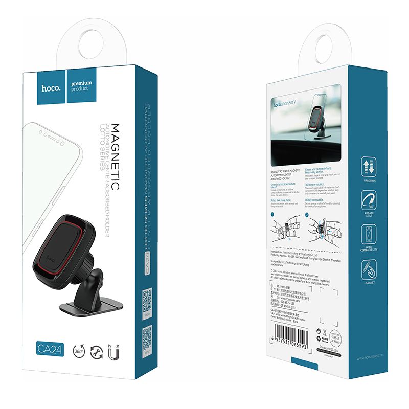 Надійно закріпити гаджет дозволяє магнітний утримувач. Отже виключається будь-яка можливість падіння гаджета. Місце встановлення Hoco CA24 в салоні автомобіля – торпедо або лобове скло. Така конструкція гарантує багато переваг: