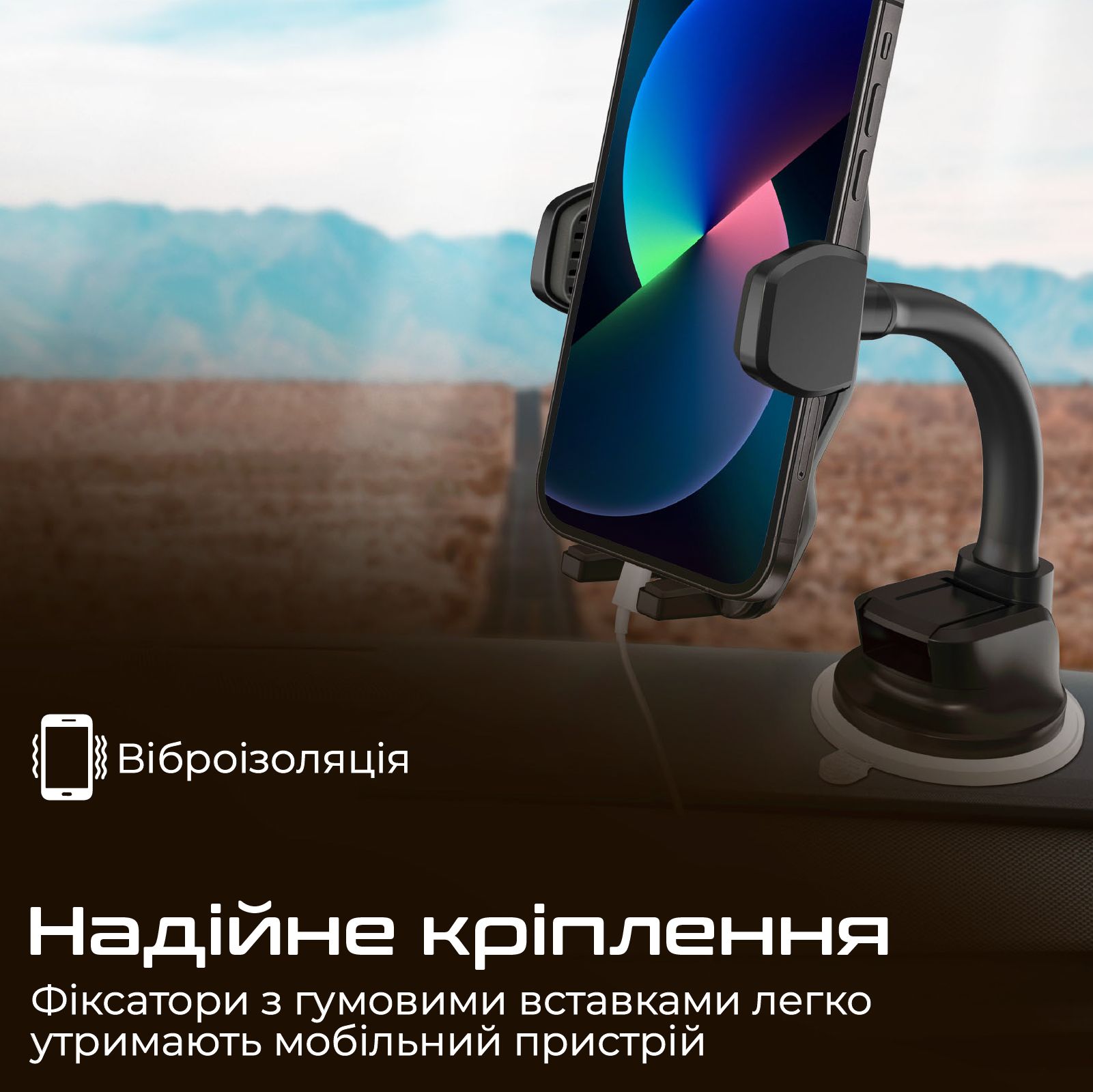 Легка установка: Торпедо або вітрове скло. Ніяких інструментів, просто зафіксуй присоску на будь-якій рівній поверхні.