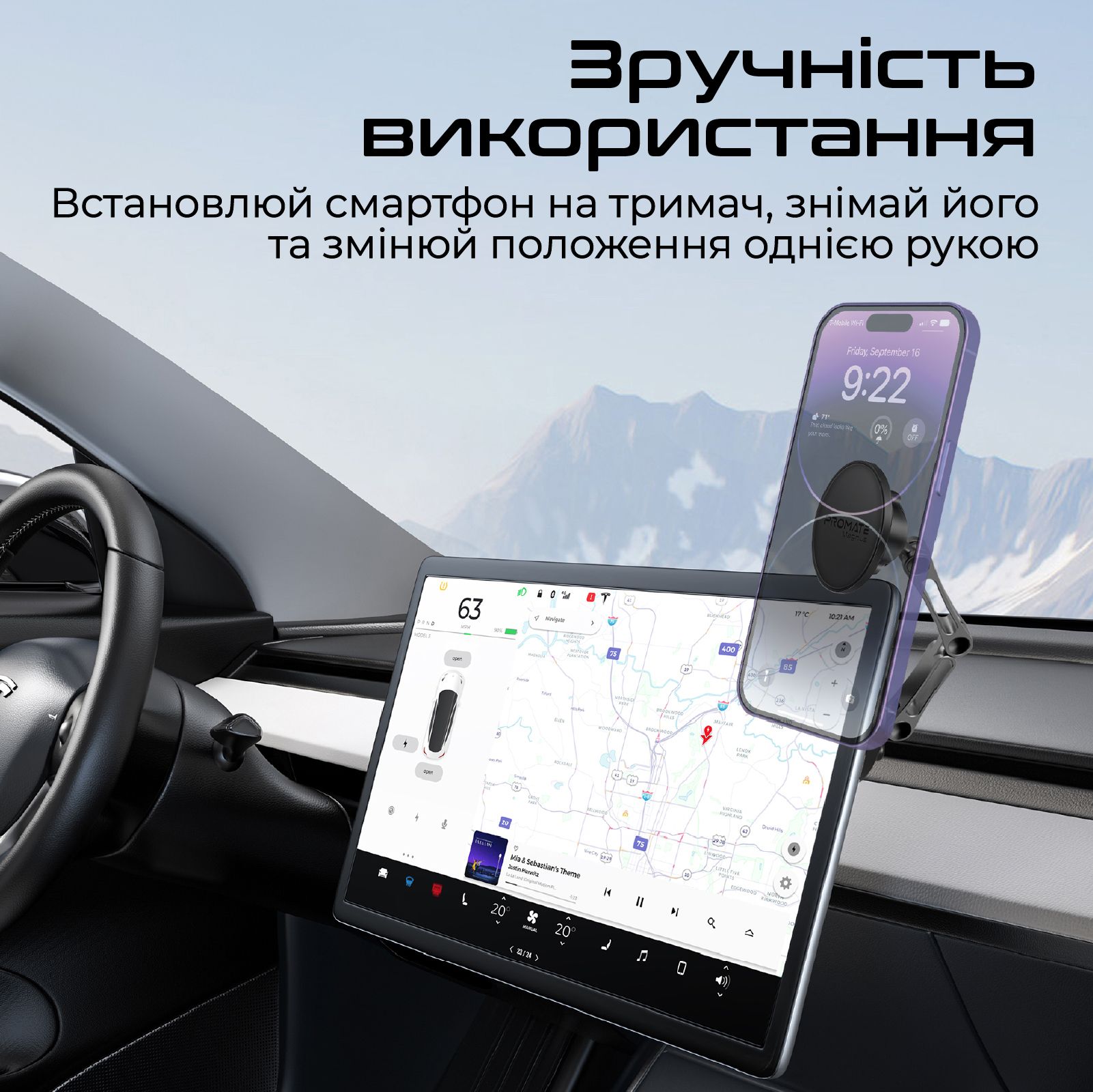 Надійна фіксація: Неодимові магніти N52 з легкістю втримають телефон навіть на дорозі з ямами.