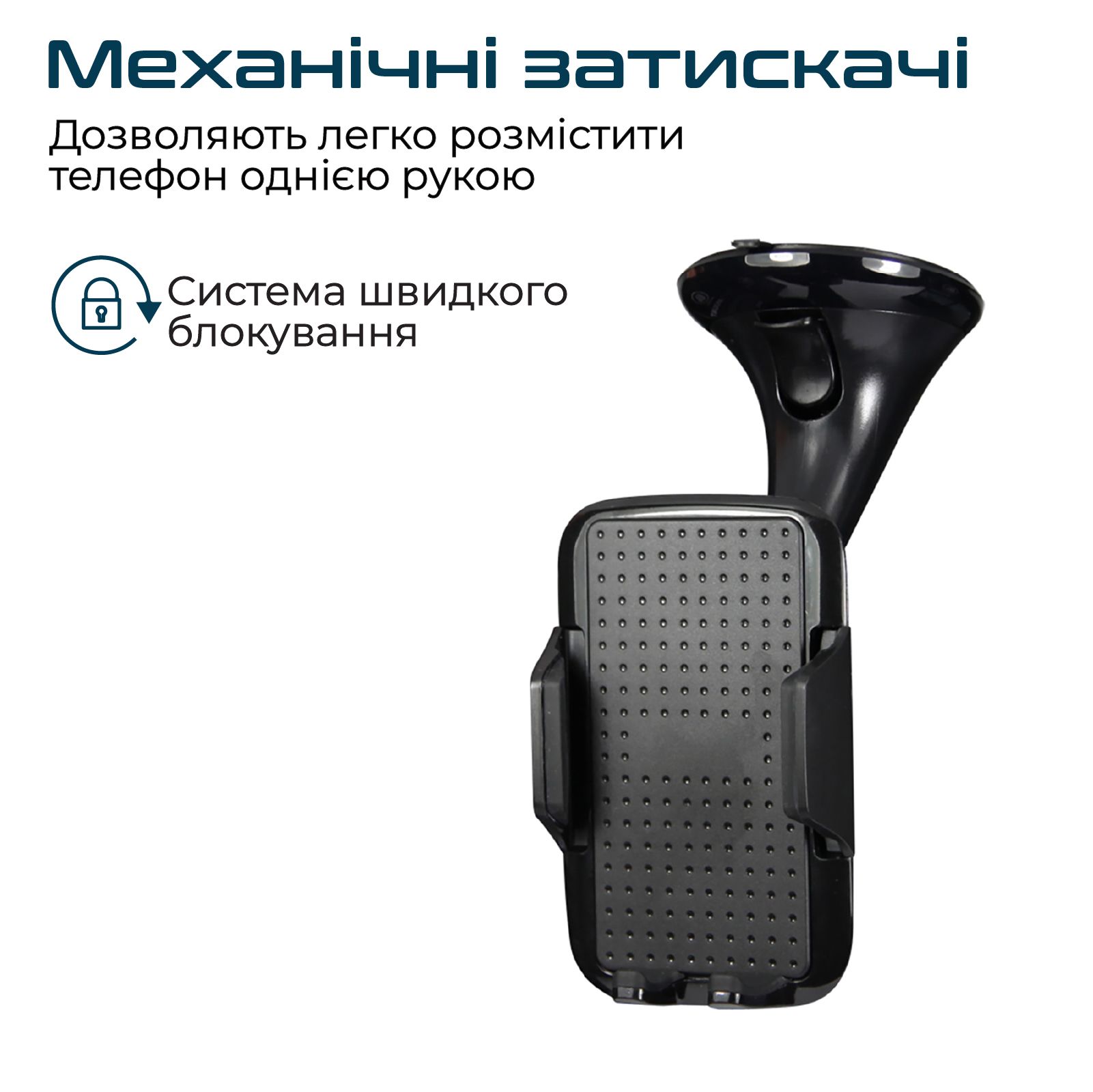 Легка установка: Торпедо або вітрове скло. Ніяких інструментів, просто зафіксуй тримач на будь-якій рівній поверхні.