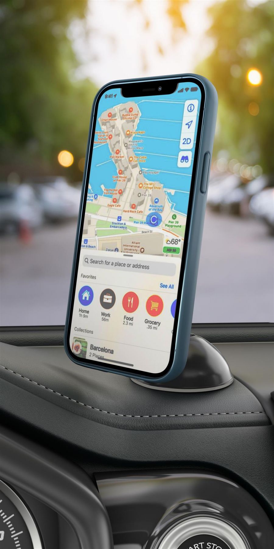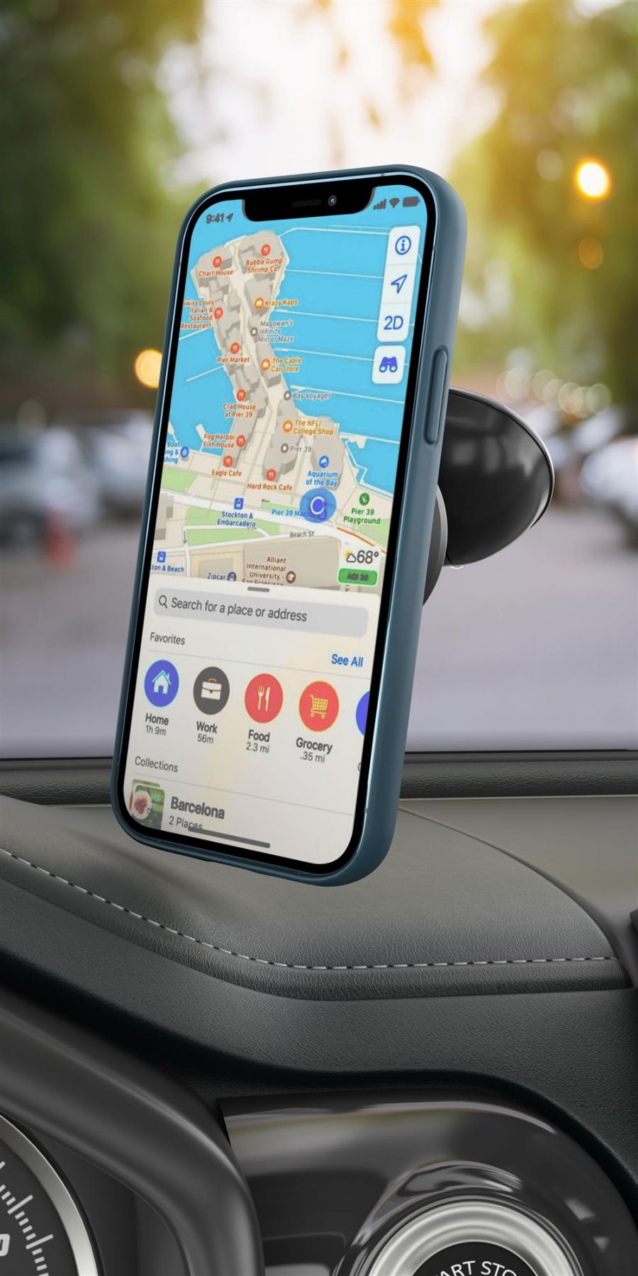 Силіконова присоска забезпечує надійну фіксацію на торпедо чи лобовому склі.