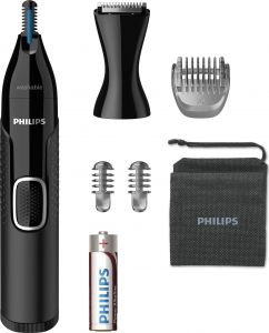 Тример для носа Philips серії 5000 дбайливо видаляє волосся у носі та вухах, а також дозволяє підрівнювати брови та створювати точні контури. Нова технологія PrecisionTrim та система Protective Guard забезпечують просте та ефективне підрівнювання без висмикування волосків.
