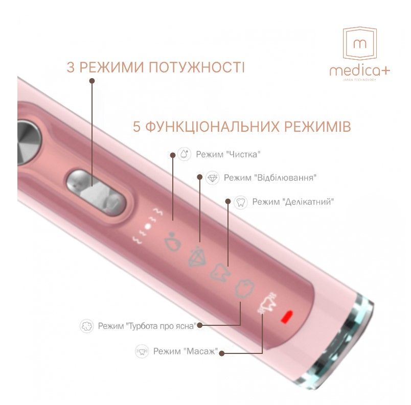 Режими:відбілювання, чистка, делікатний, турбота про ясна, масаж