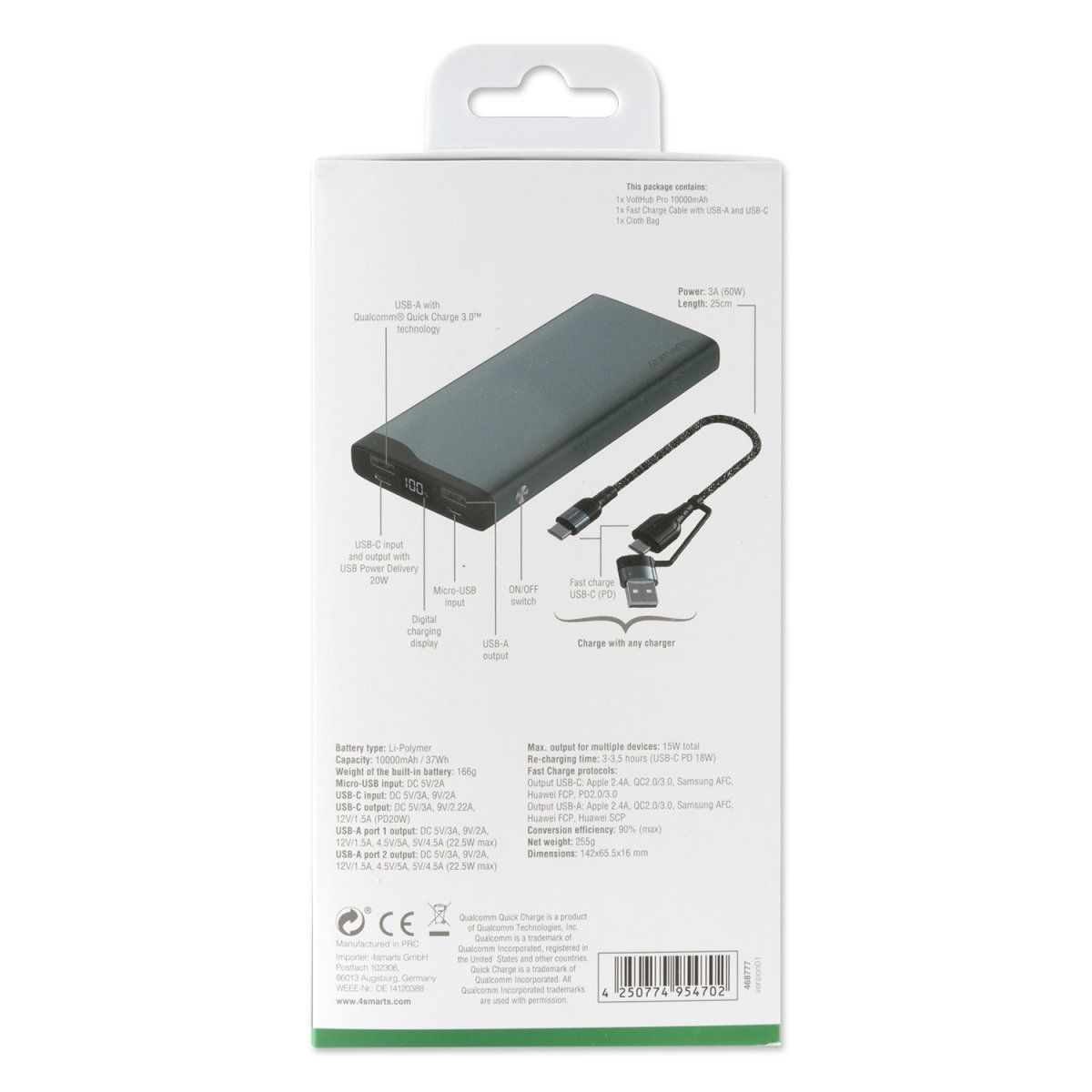 Універсальна мобільна батарея 4smarts VoltHub Pro 10000mAh 22.5W with Quick Charge, PD gunmetal *Select Edition*