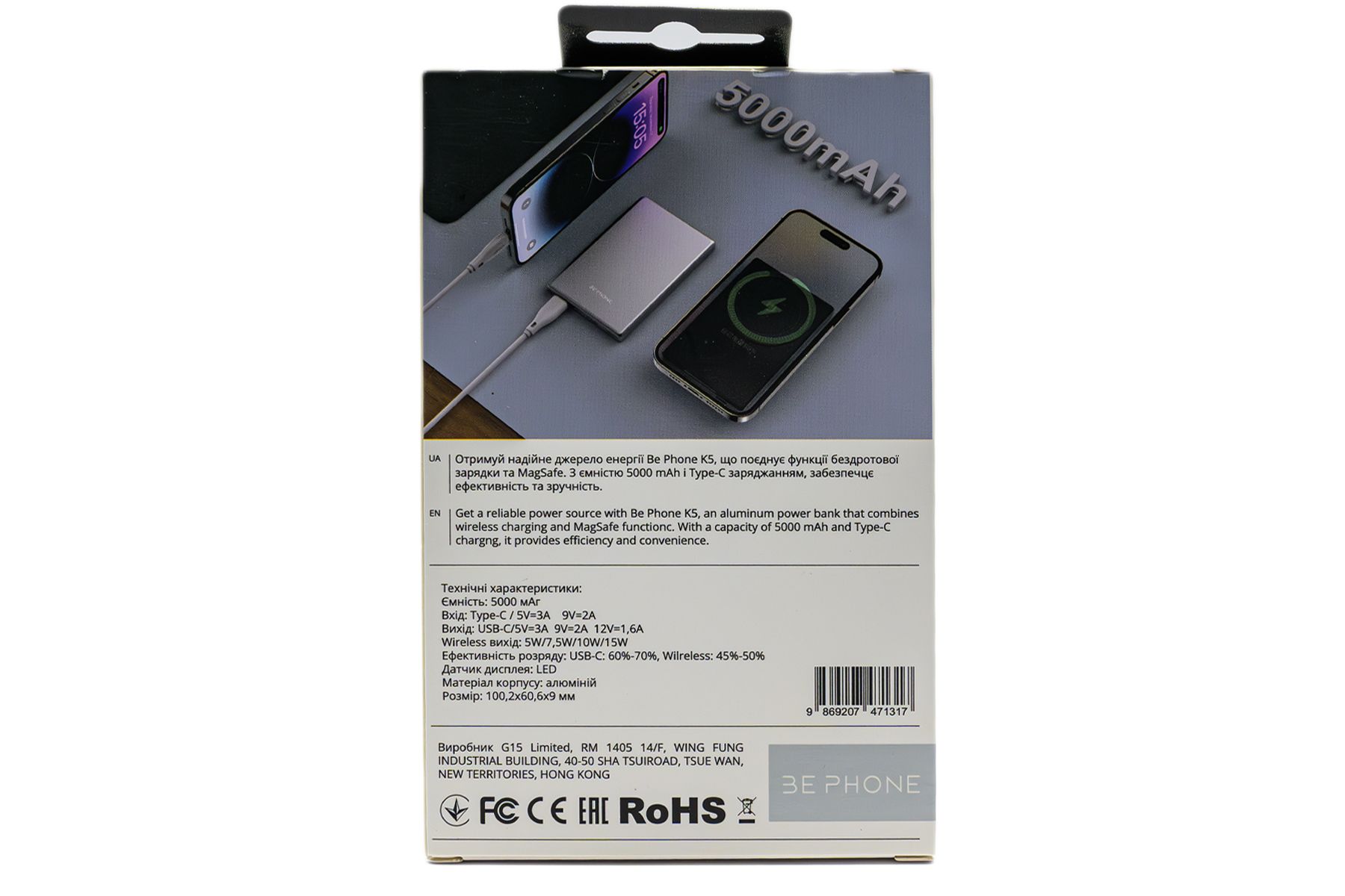 Універсальна мобільна батарея BePhone K5 5000 mAh MagSafe Grey 15W (BP-K5-GR)