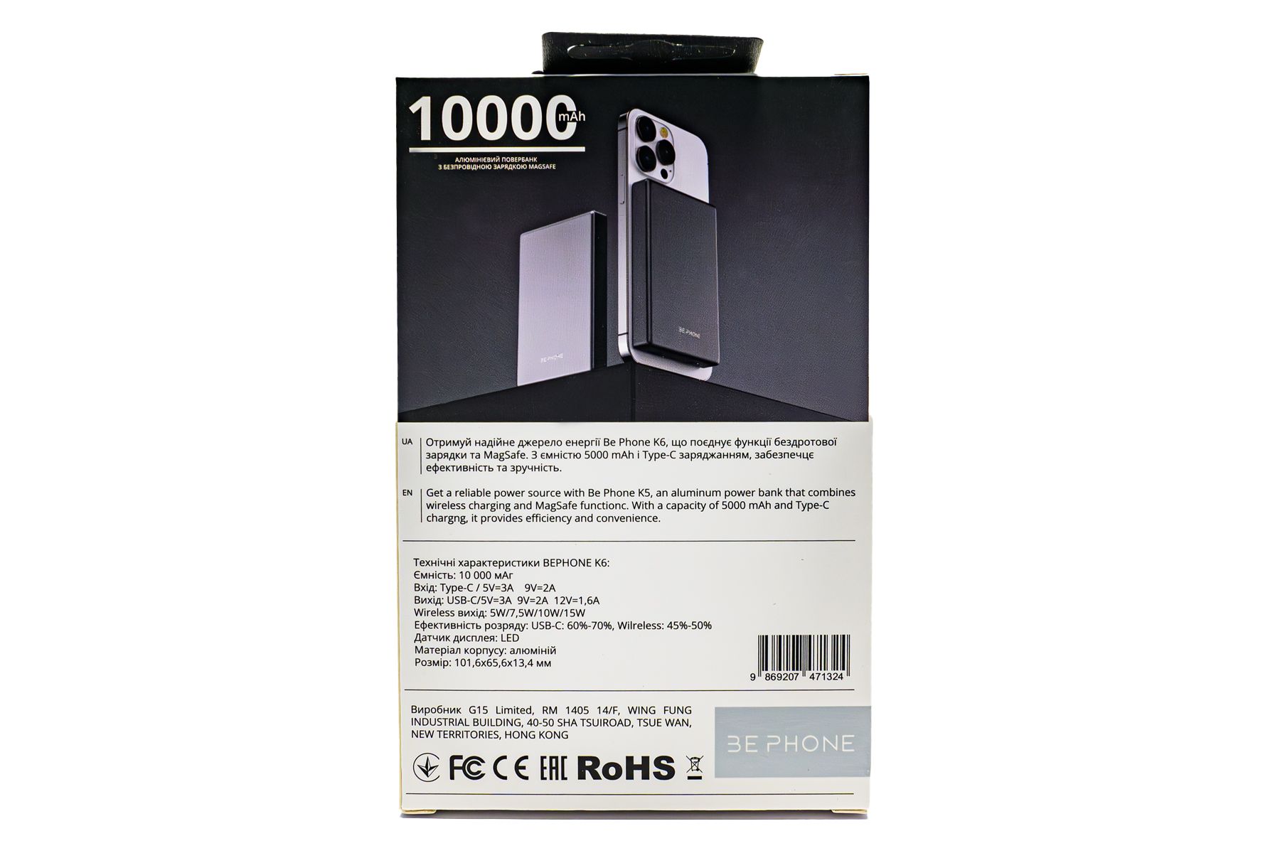 Повербанк BePhone K6 MagSafe з бездротовою зарядкою – ваш надійний супутник для продовження часу роботи пристрою у будь-який час та в будь-яких умовах.