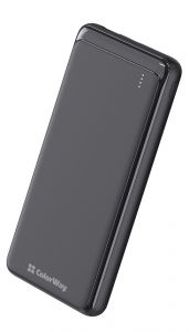 Портативний зарядний пристрій ColorWay оснащений високоякісним літій-полімерним акумулятором 10000mAh, який має декілька рівнів захисту від короткого замикання та перепадів напруги, що гарантує безпеку, та унеможливлює пошкодження мобільного пристрою. Виготовлено із високоякісних матеріалів, індикатори дозволять стежити за рівнем заряду. Місткість батареї дозволить зарядити девайс кілька разів, а сучасний дизайн стане прекрасним доповненням до будь-якого пристрою.