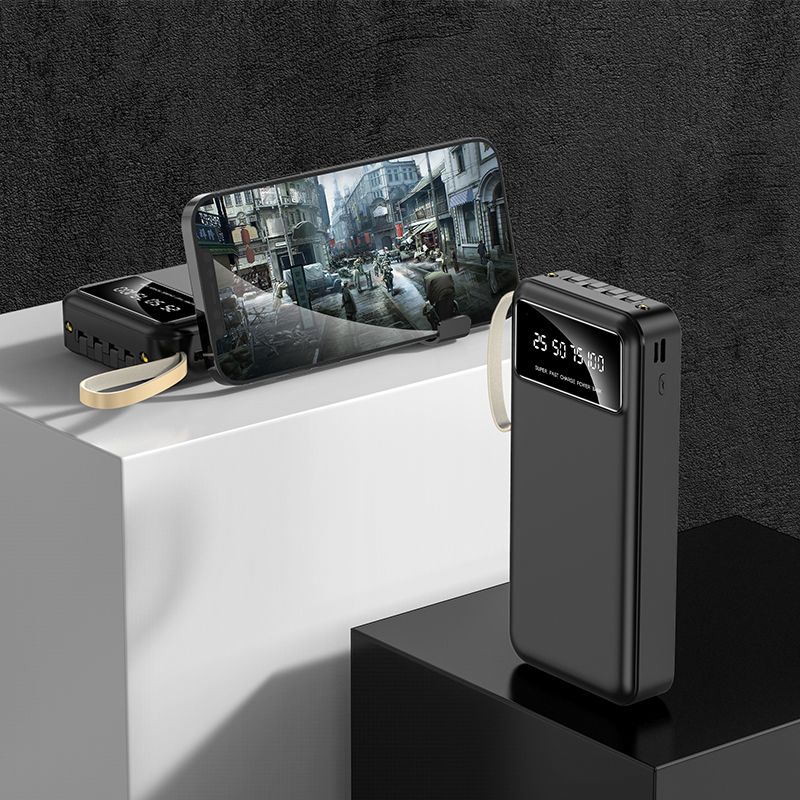 Місткість акумулятора, розміщеного всередині повербанку, - 20000 мАг. Цього вистачить, не тільки щоб заряджати телефон усі вихідні, а й на цілий тиждень, проведений поза цивілізацією. Для зарядки повербанку підходить практично будь-який кабель. Тому ви можете заряджати його дротом від телефону USB Type-C, micro-USB або будь-якого USB.