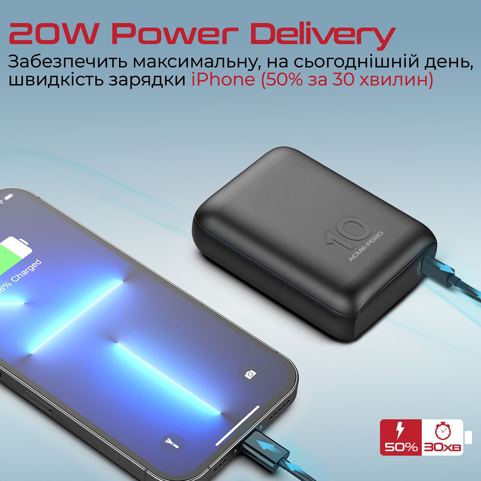 20 Вт Power Delivery USB-C порт: Забезпечить максимальну, на сьогоднішній день, швидкість зарядки iPhone (50% за 30 хвилин).