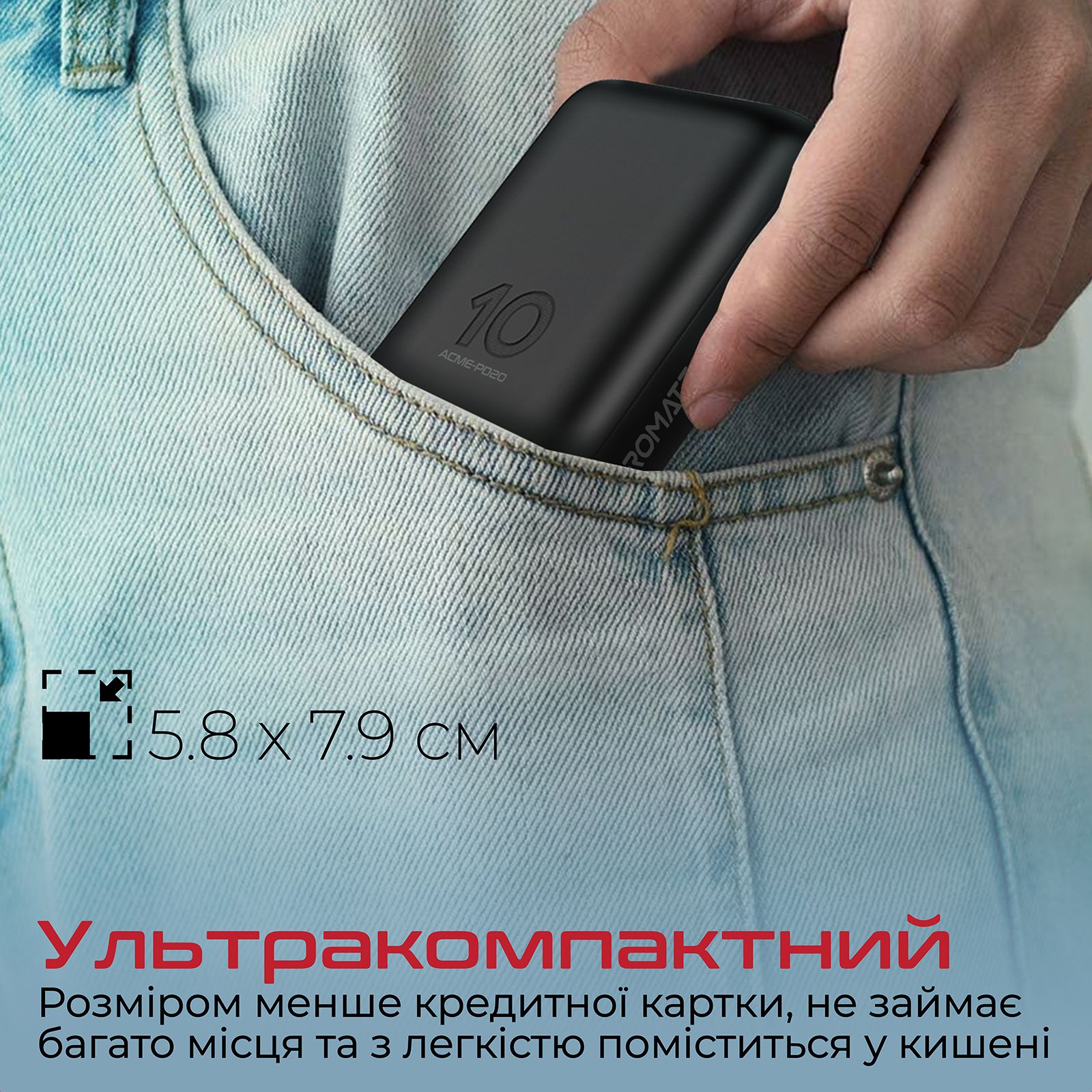 Ультракомпактний: Розміром менше кредитної картки (5.8х7.9 см), не займає багато місця та поміщається навіть у долоні.
