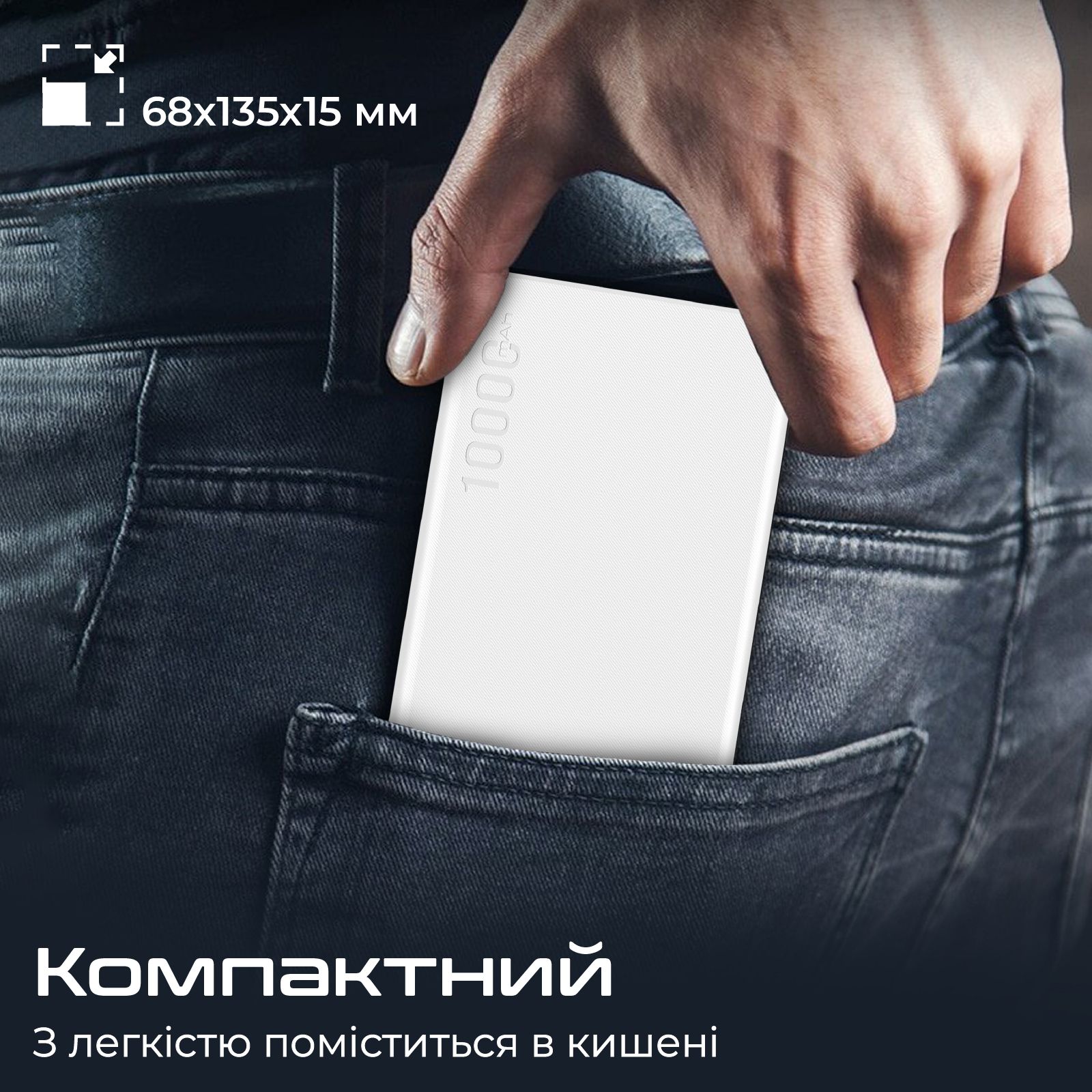 Li-Polymer батарея на 10 000 mAh: Зарядить смартфон 3 рази або планшет 2 рази. Сам повербанк можна зарядити через USB-C чи microUSB порт за 5 годин.